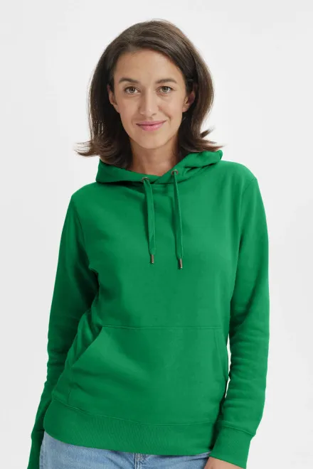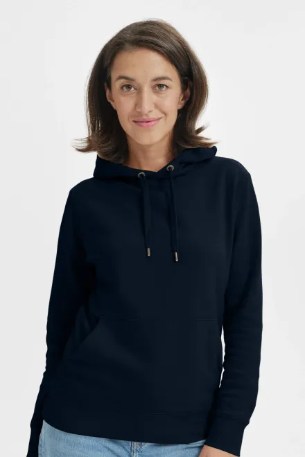 Il cappuccio offre protezione dal freddo, mentre le pratiche tasche aggiungono funzionalità e comodità. Il taglio della felpa valorizza la silhouette femminile, mantenendo comunque una vestibilità casual e confortevole. Questo capo estremamente versatile è perfetto per il tempo libero, il lavoro o il relax a casa – insomma, in ogni momento in cui desiderate sentirvi a vostro agio.