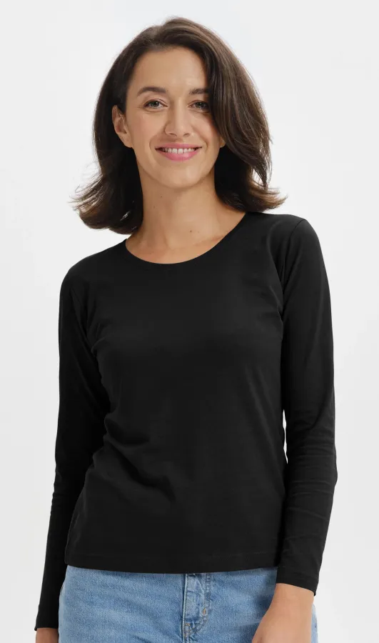 T-shirt da donna a maniche lunghe, nero, XS